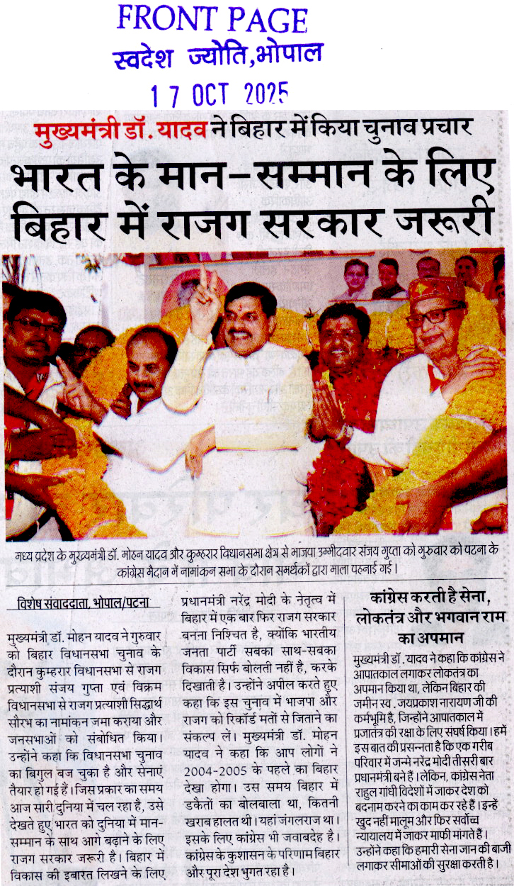 सीएम डॉ. मोहन यादव ने बिहार के दो विस क्...