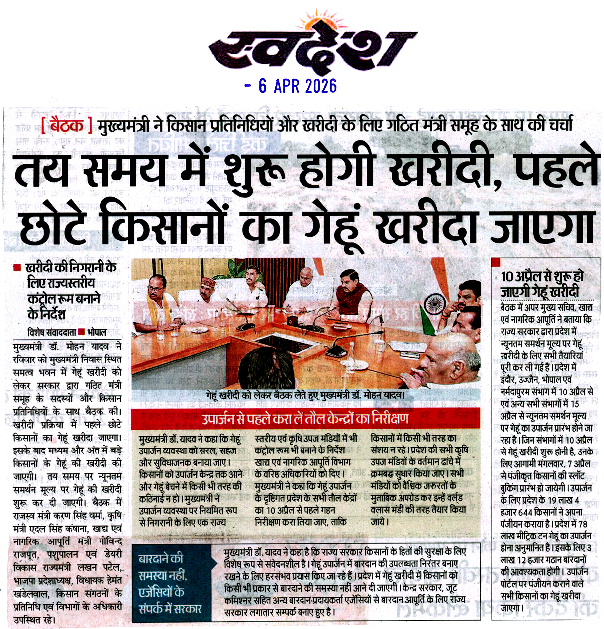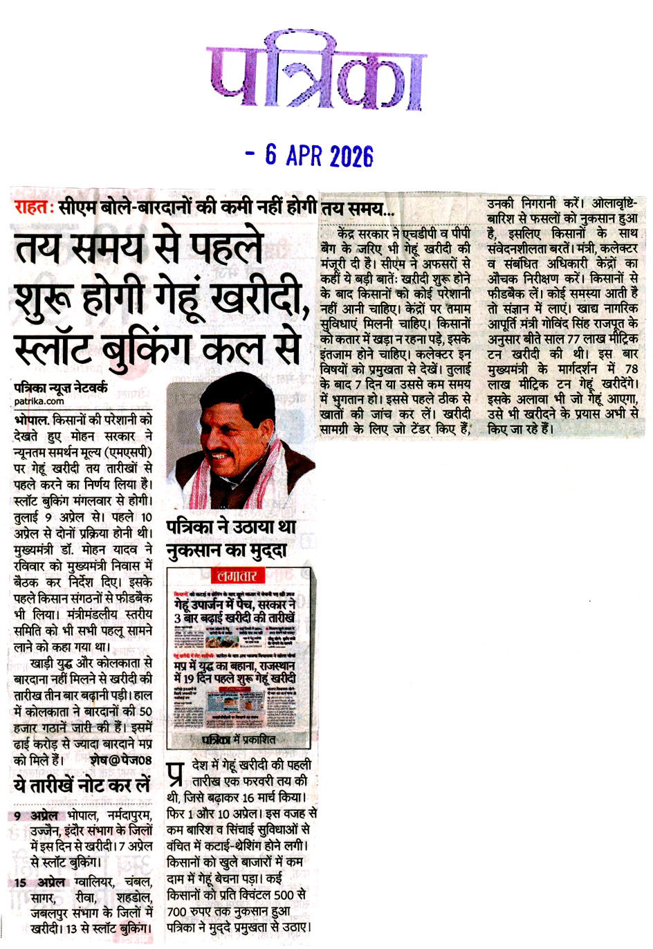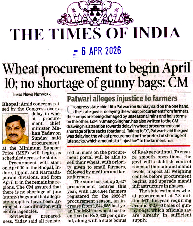 तय समय से पहले शुरू होगी गेहूं खरीदी, स्...