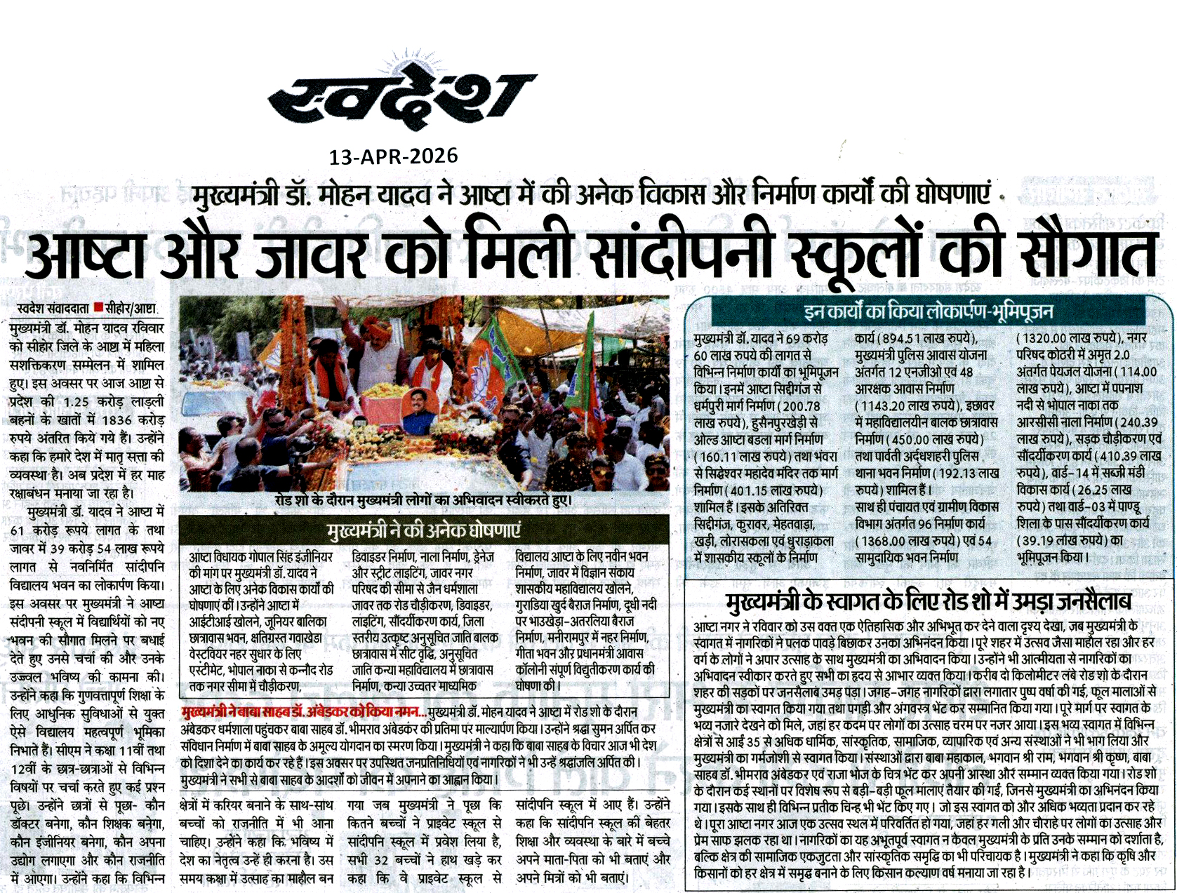आष्टा और जावर को मिली सांदीपनी स्कूलों क...