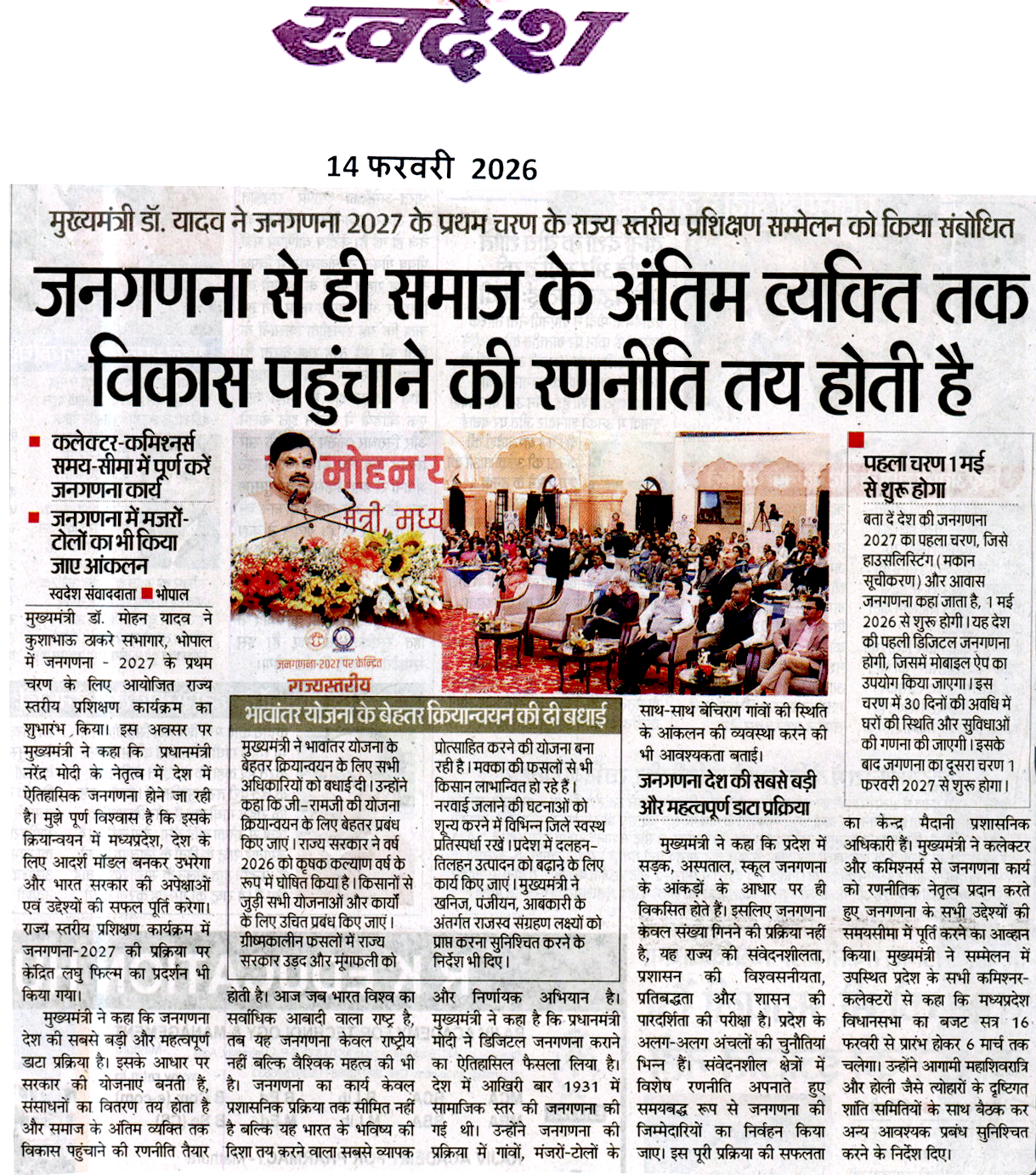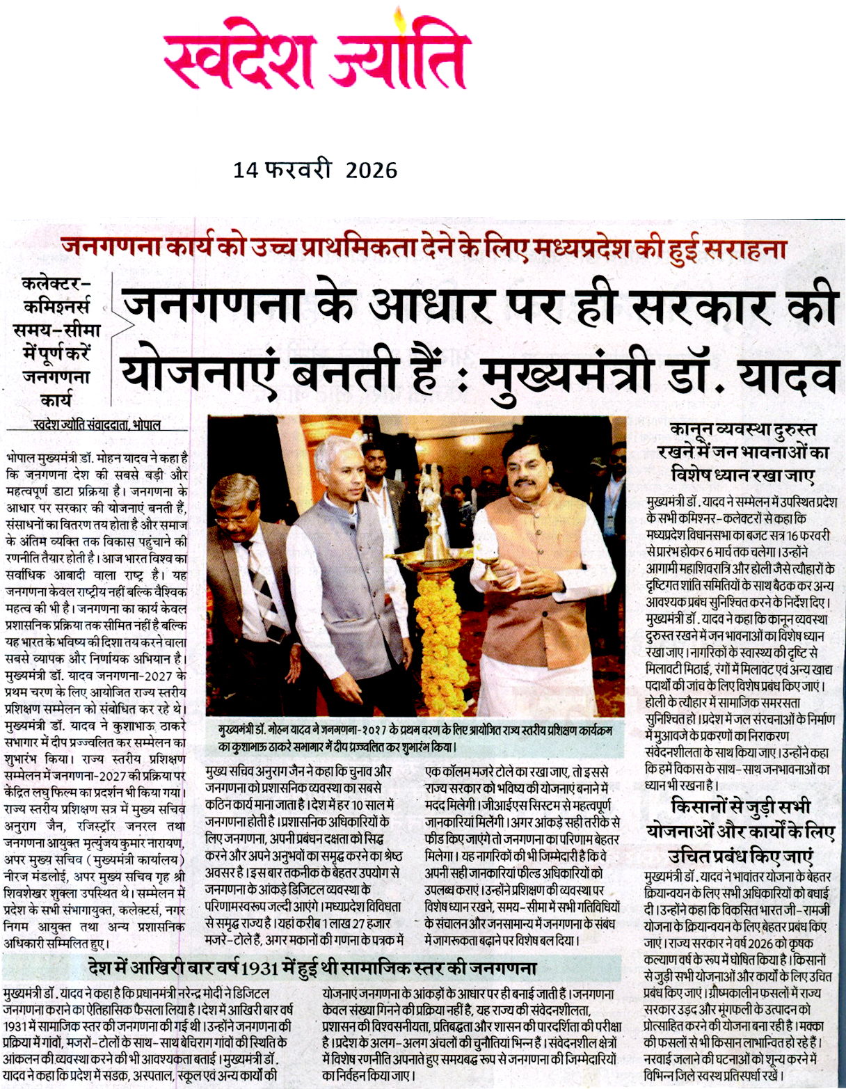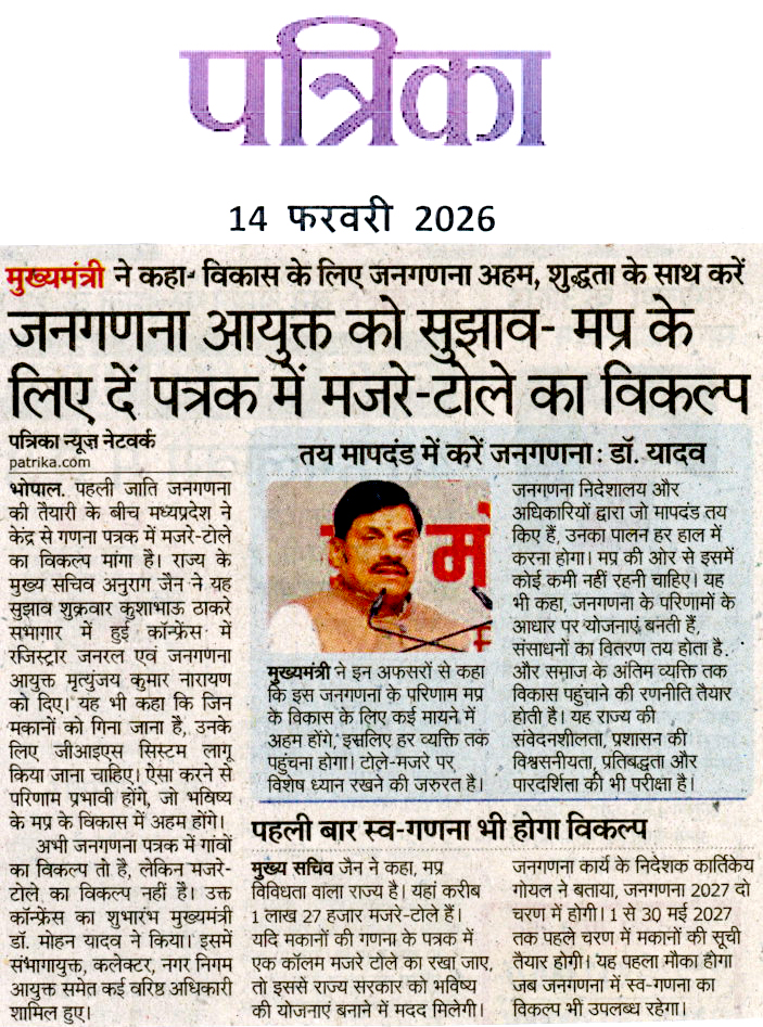 जनगणना आयुक्त को सुझाव- मप्र के लिए दें ...