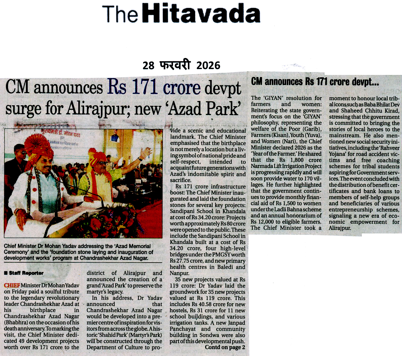 CM announces Rs 171 crore devp...