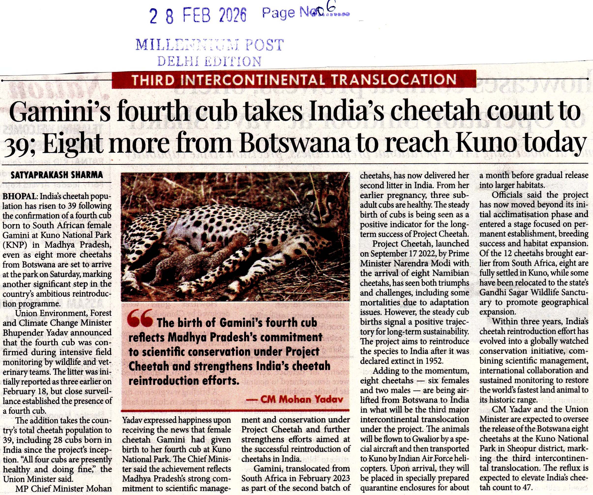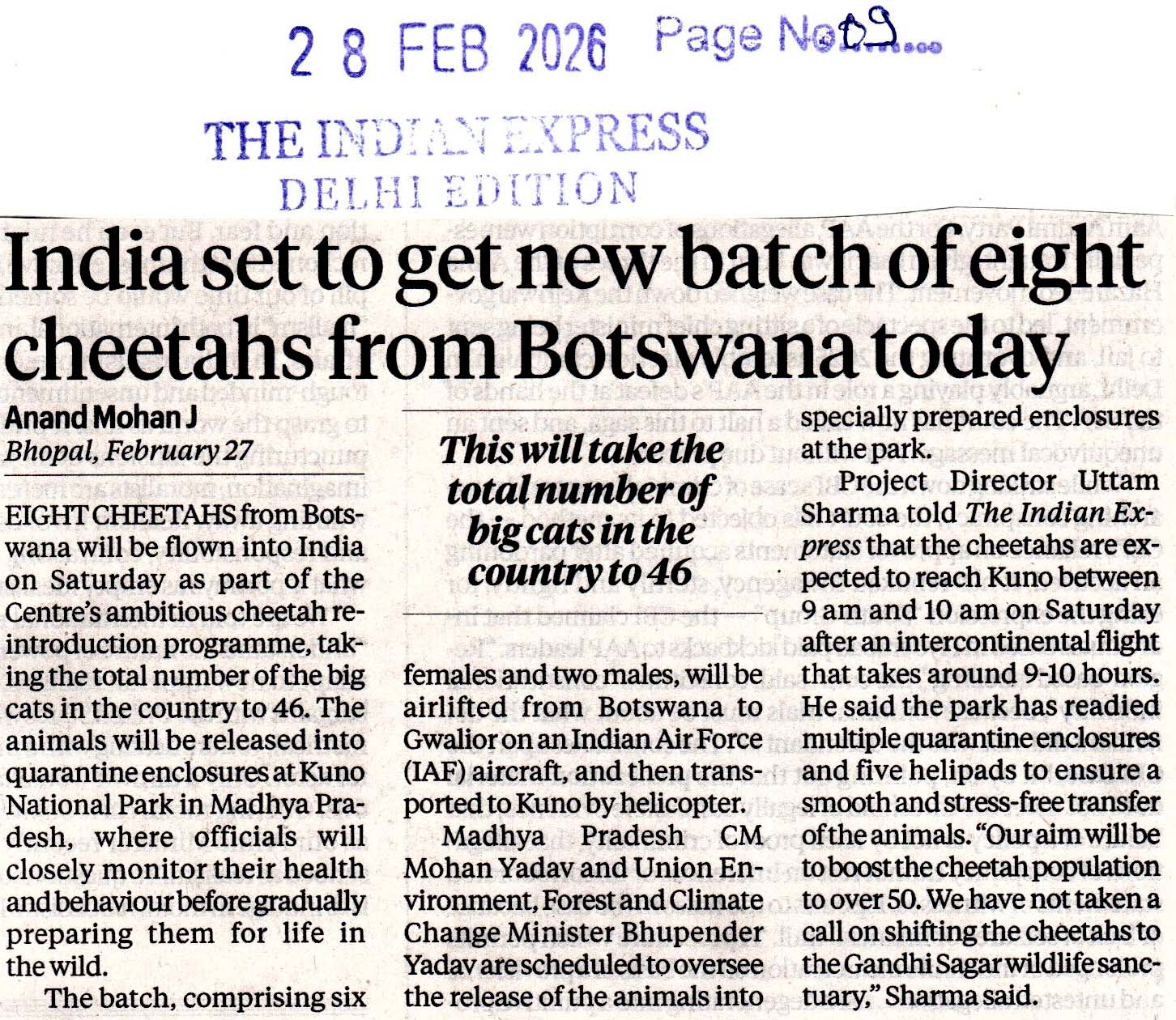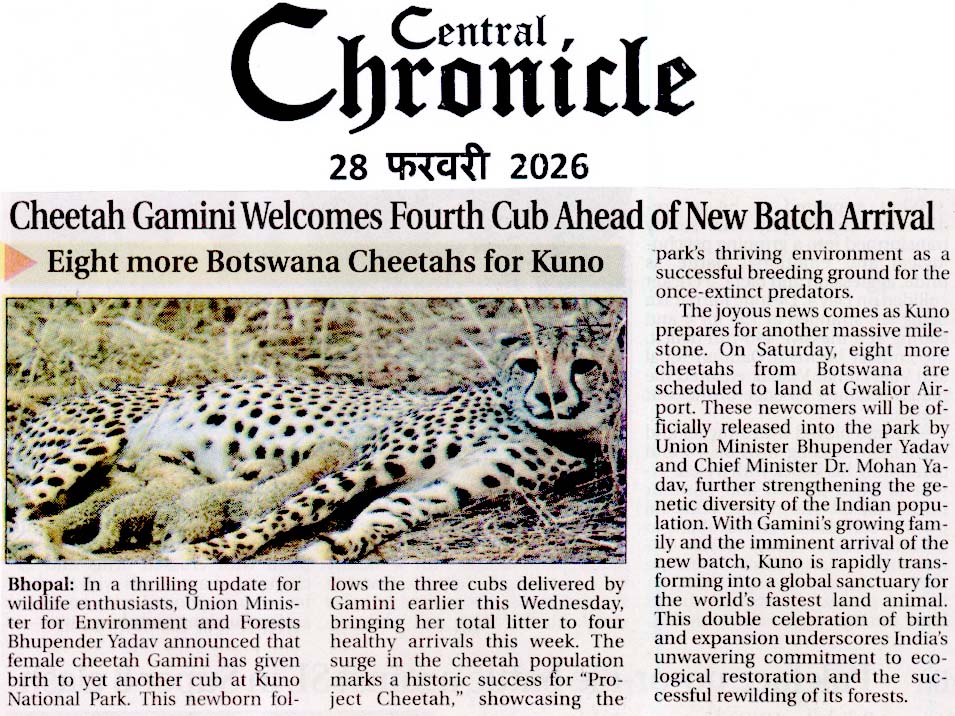 बोत्सवाना से 8 चीते आज पहुंचेंगे कूनो ने...