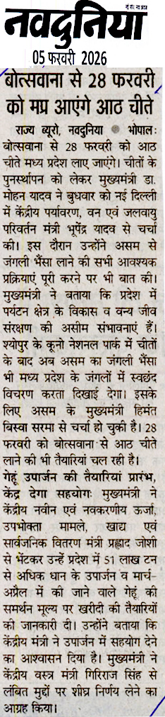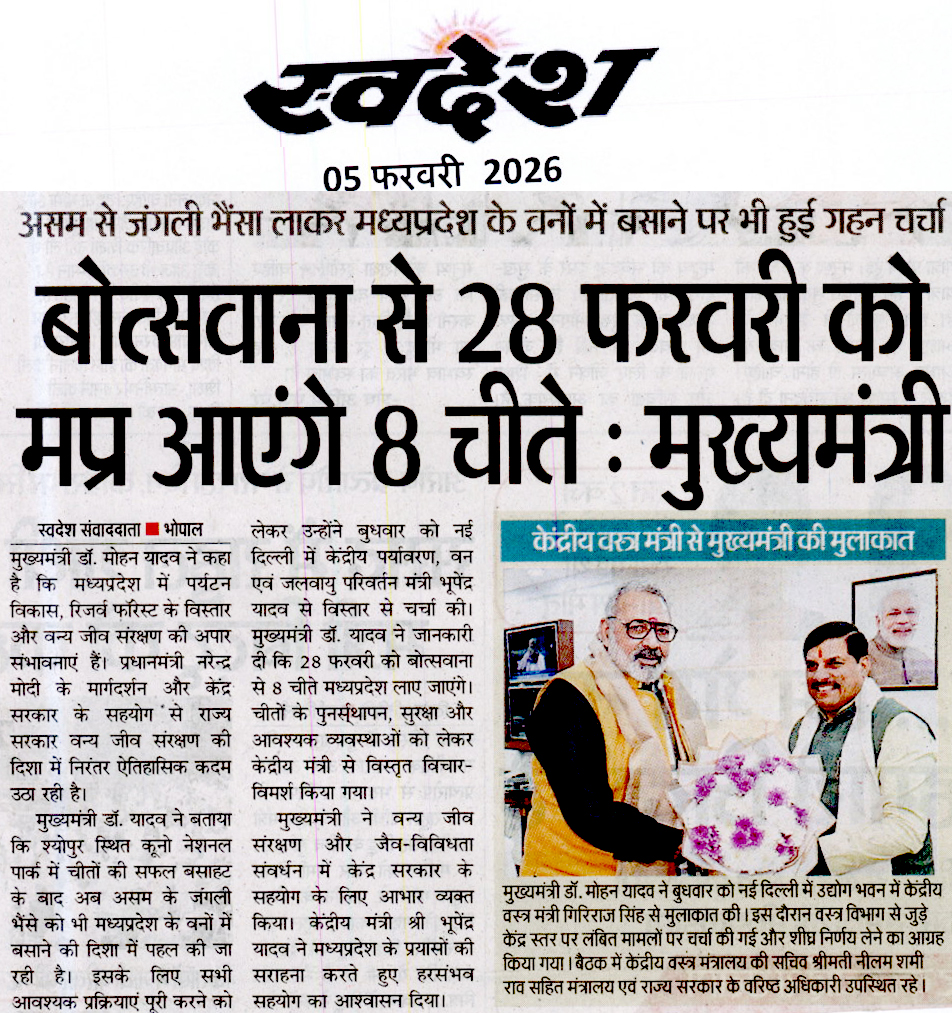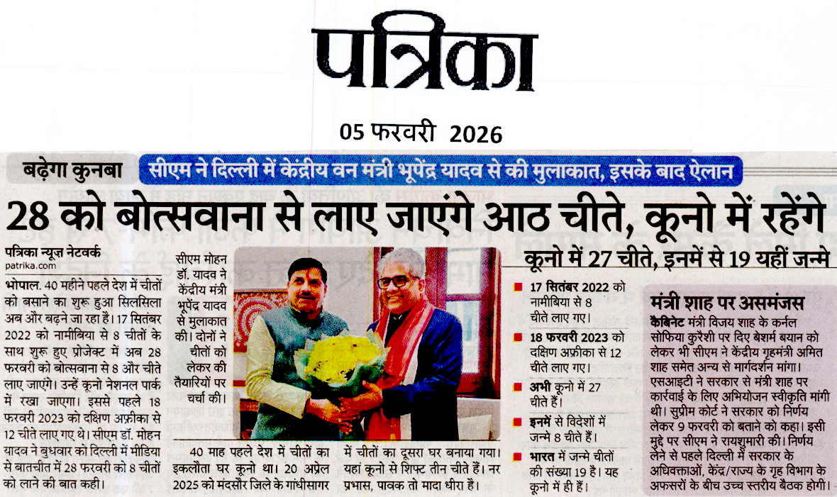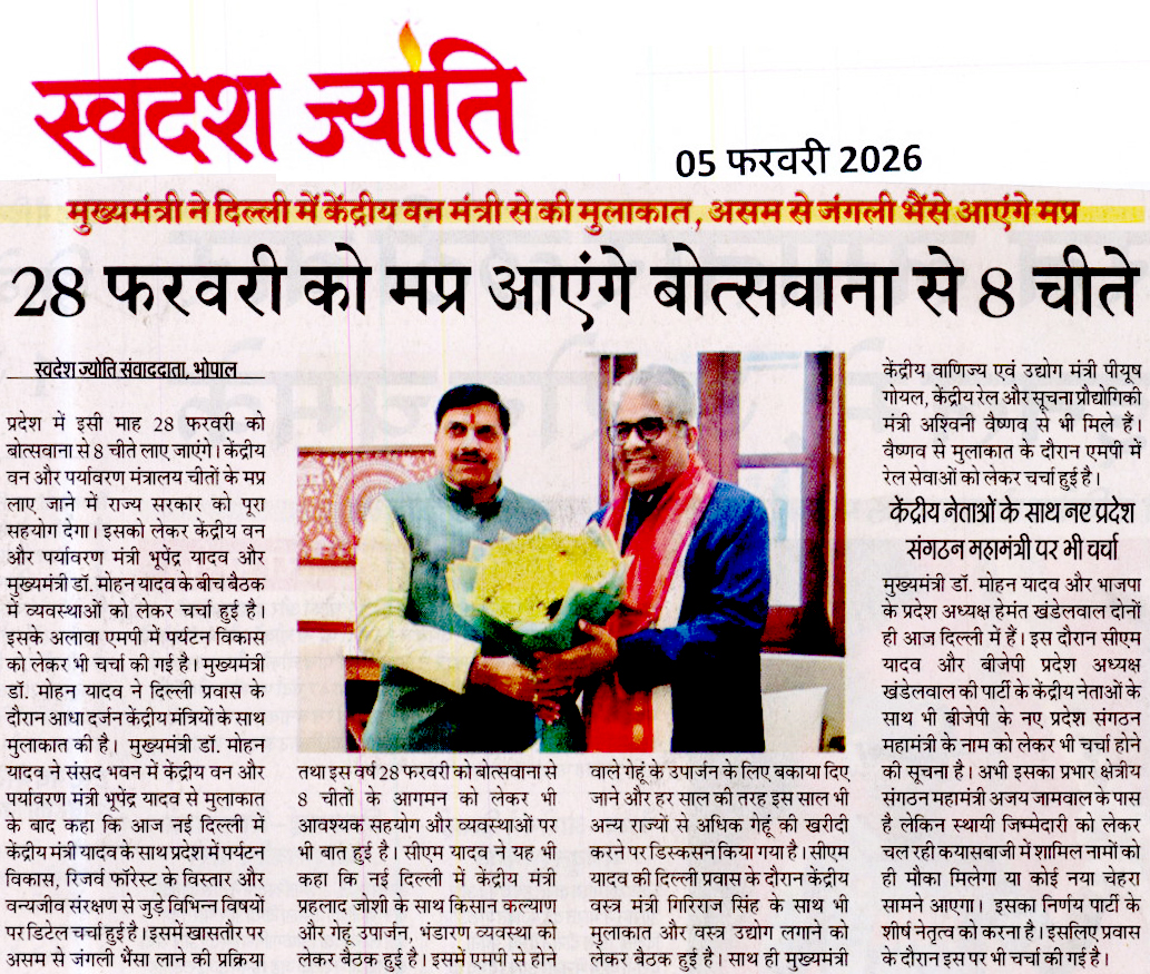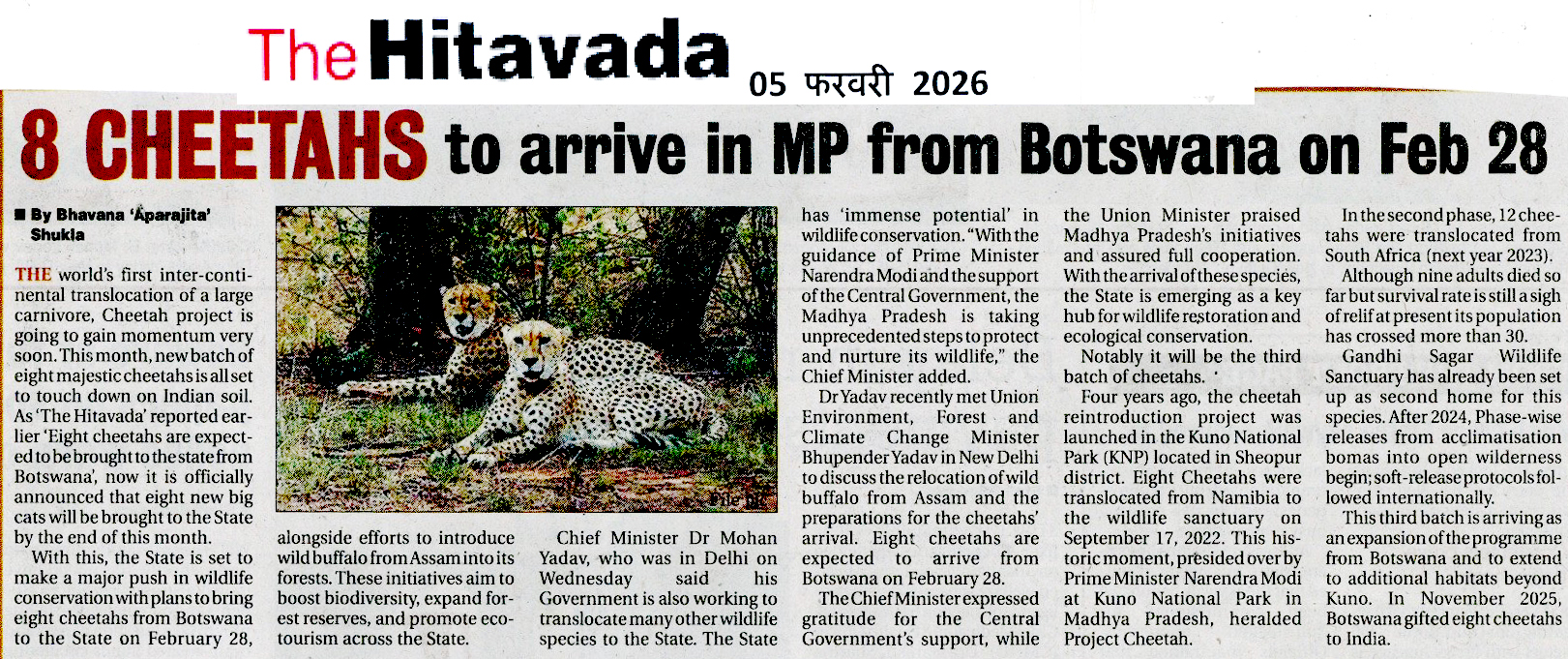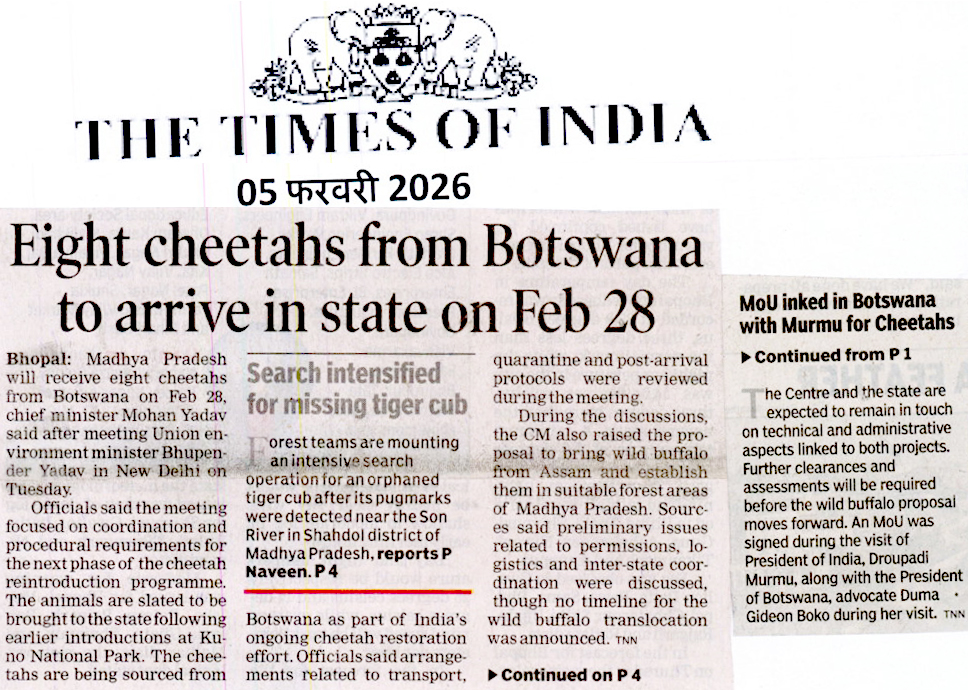 28 फरवरी को मप्र आएंगे बोत्सवाना से 8 ची...