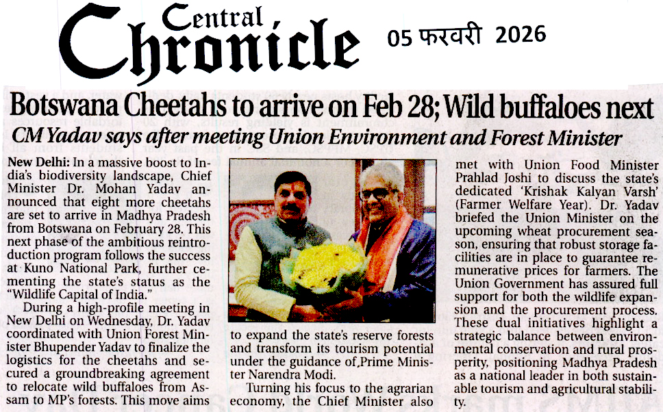 बोत्सवाना से 28 फरवरी को मप्र आएंगे 8 ची...