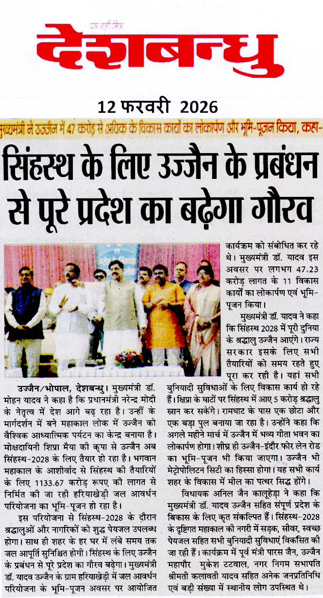 1133.67 करोड़ की परियोजना से सिंहस्थ में...