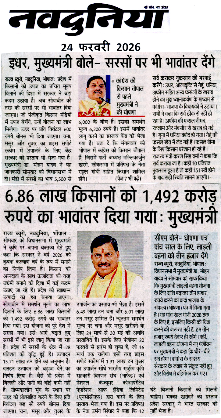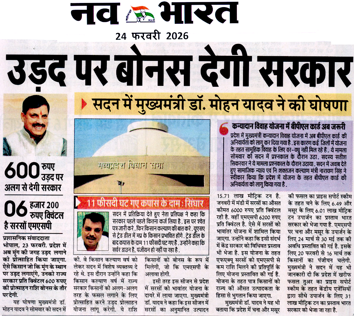 सरसों में भी भावांतर, उड़द पर ₹600 बोनस,...