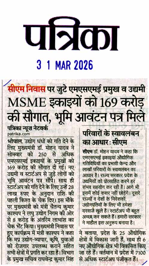 MSME इकाइयों को 169 करोड़ की सौगात, भूमि...