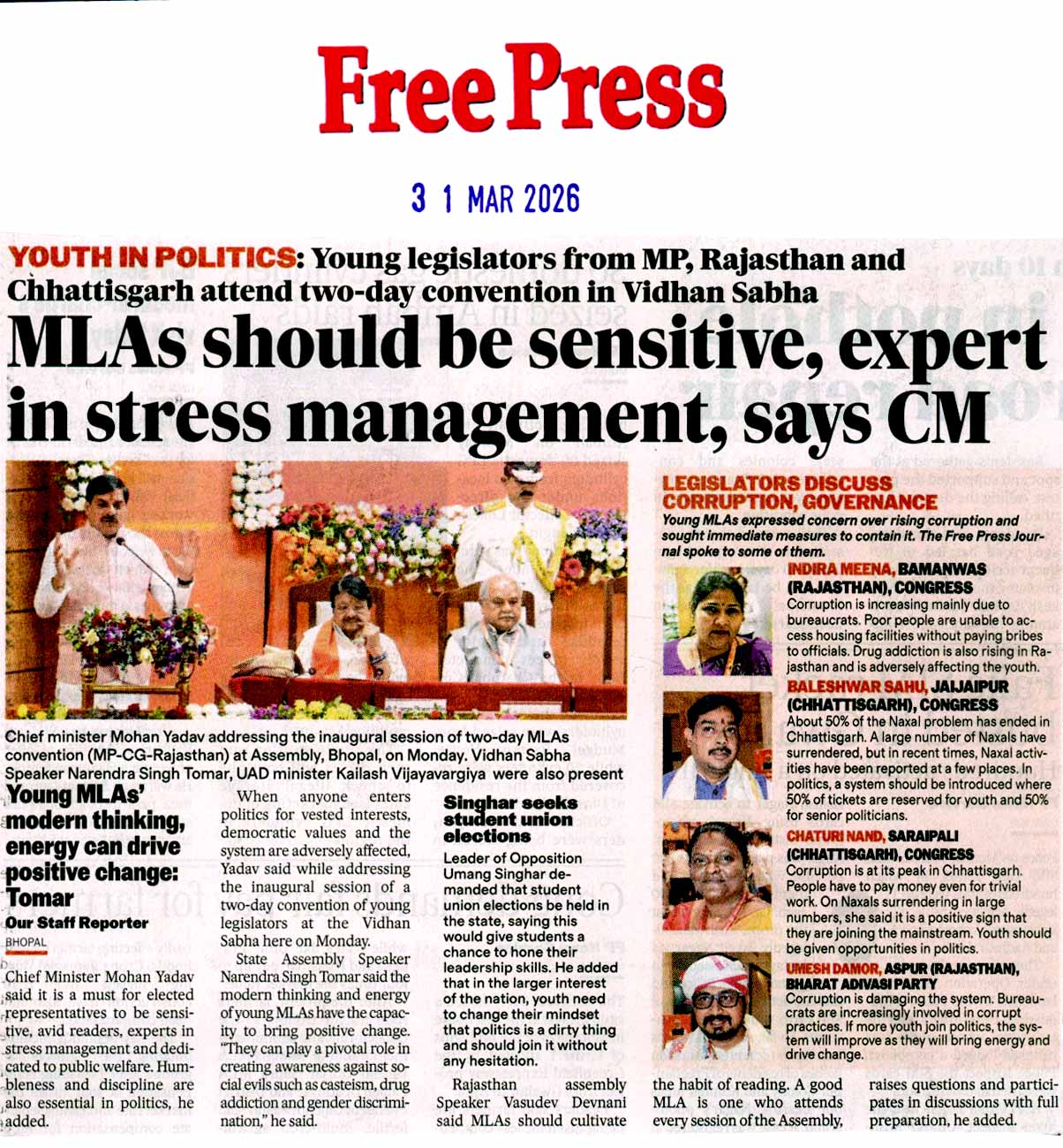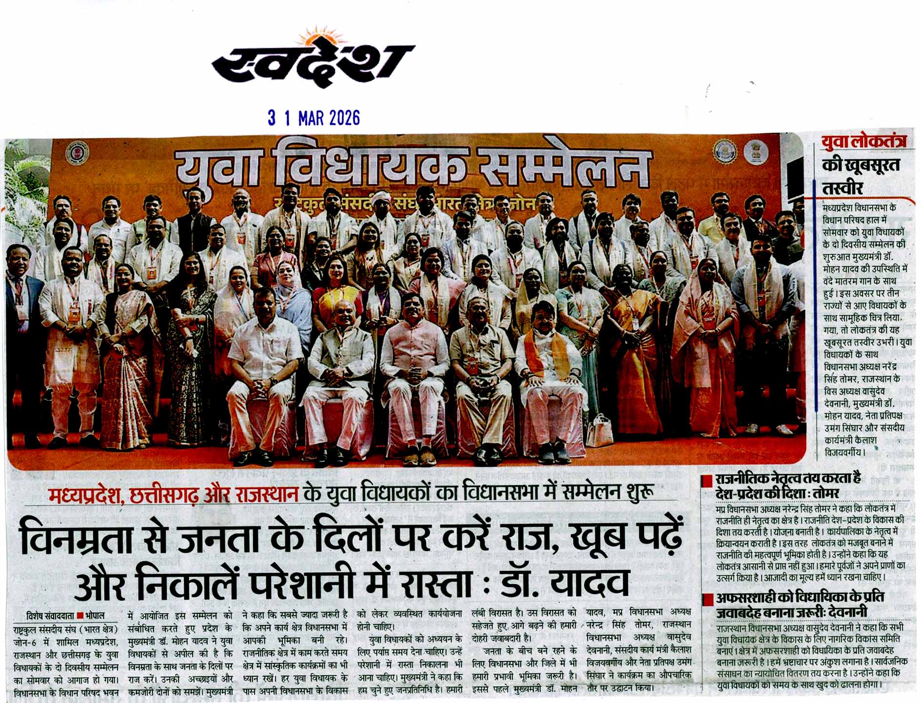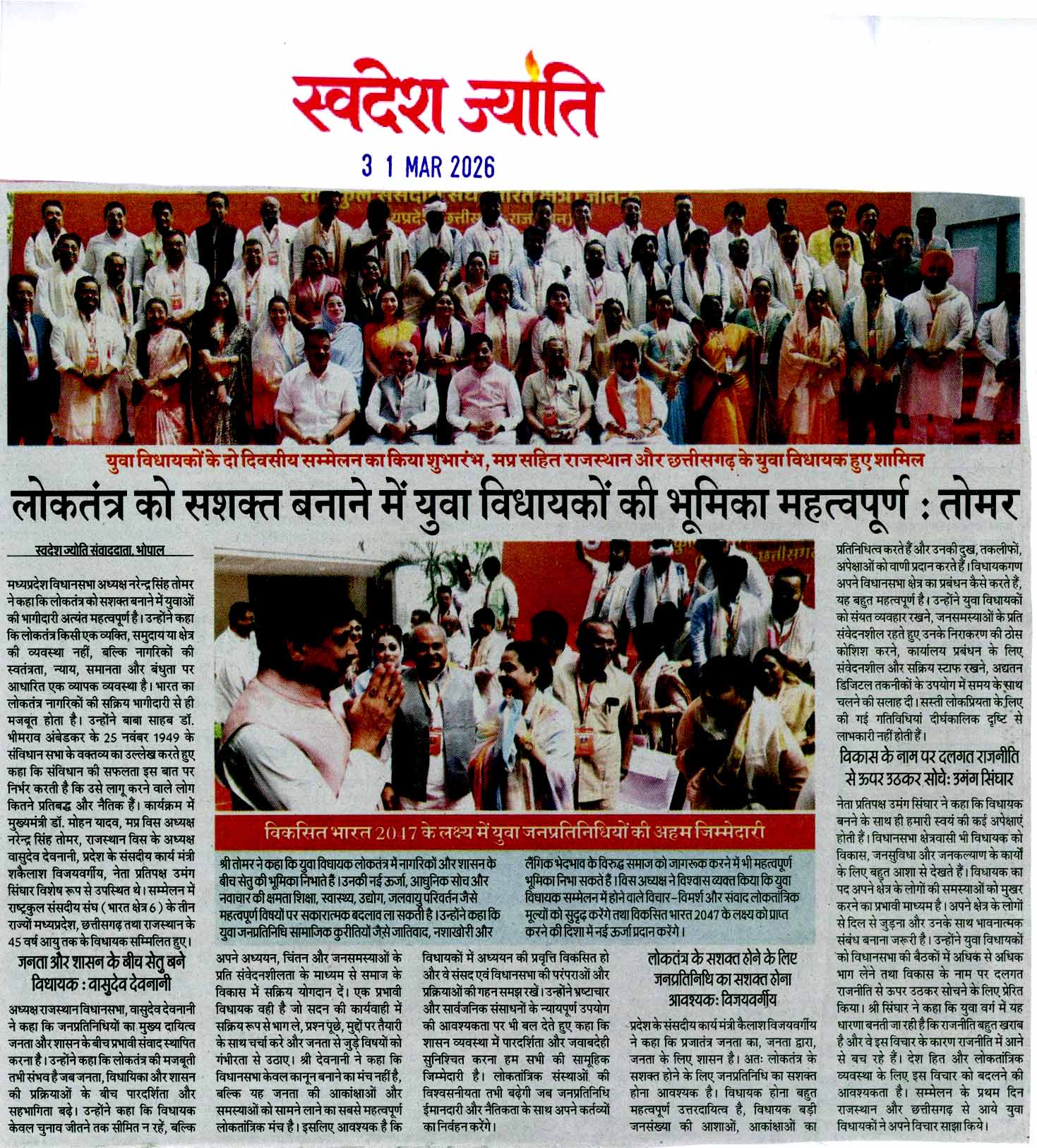लोकतंत्र को सशक्त बनाने में युवा विधायको...