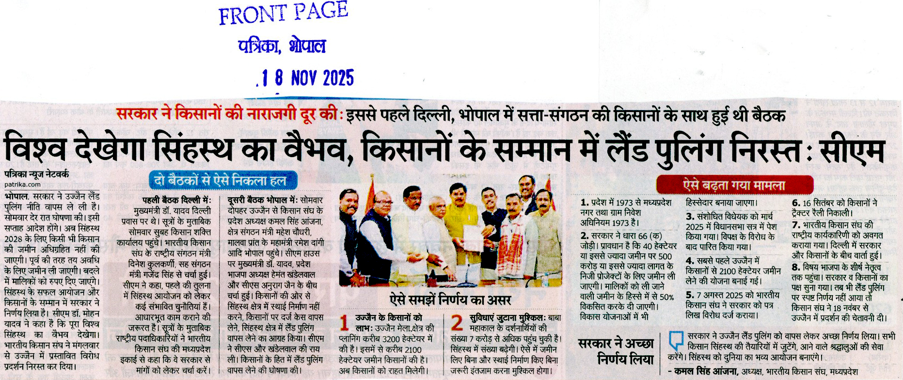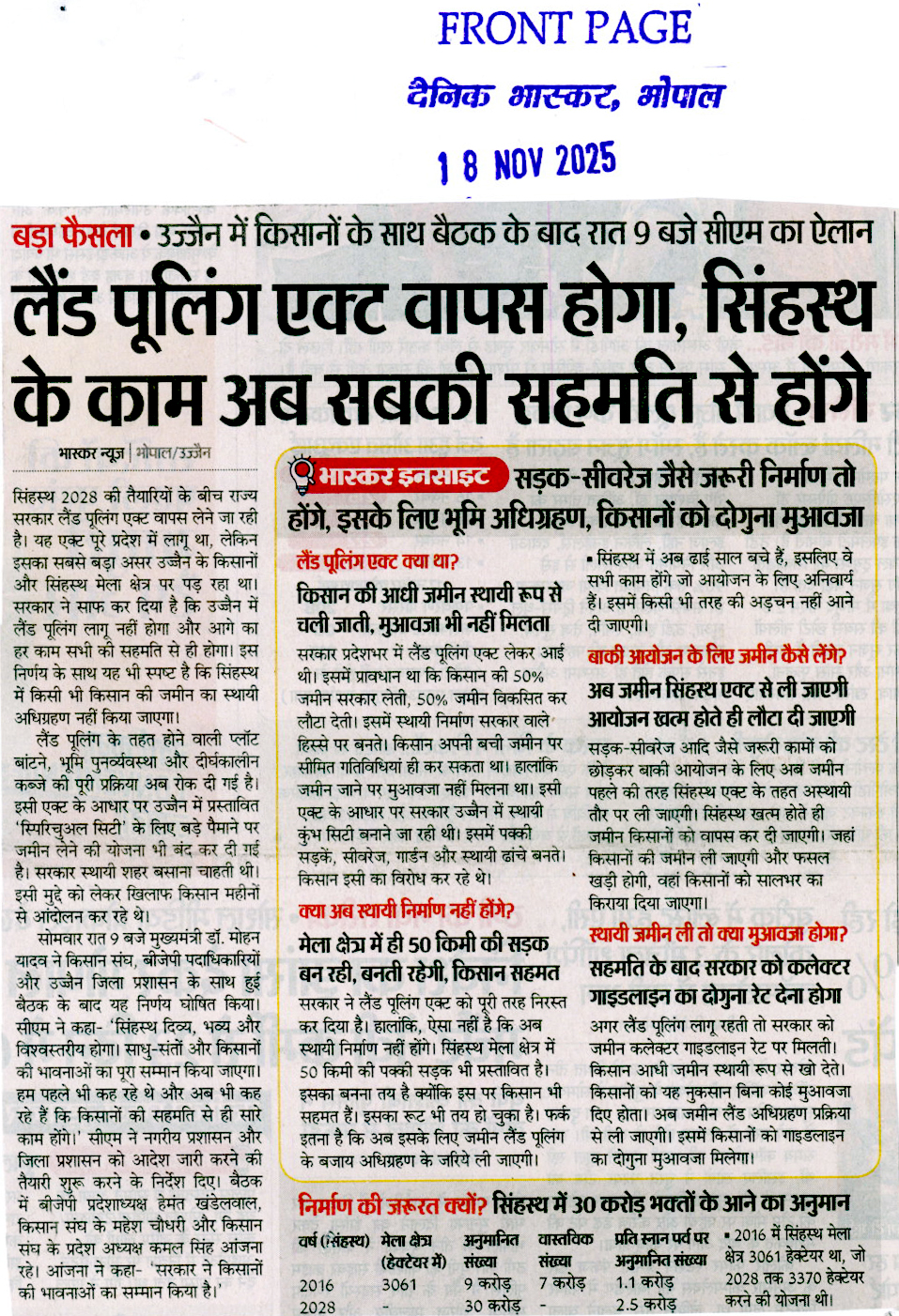 लैंड पूलिंग एक्ट वापस होगा, सिंहस्थ के क...