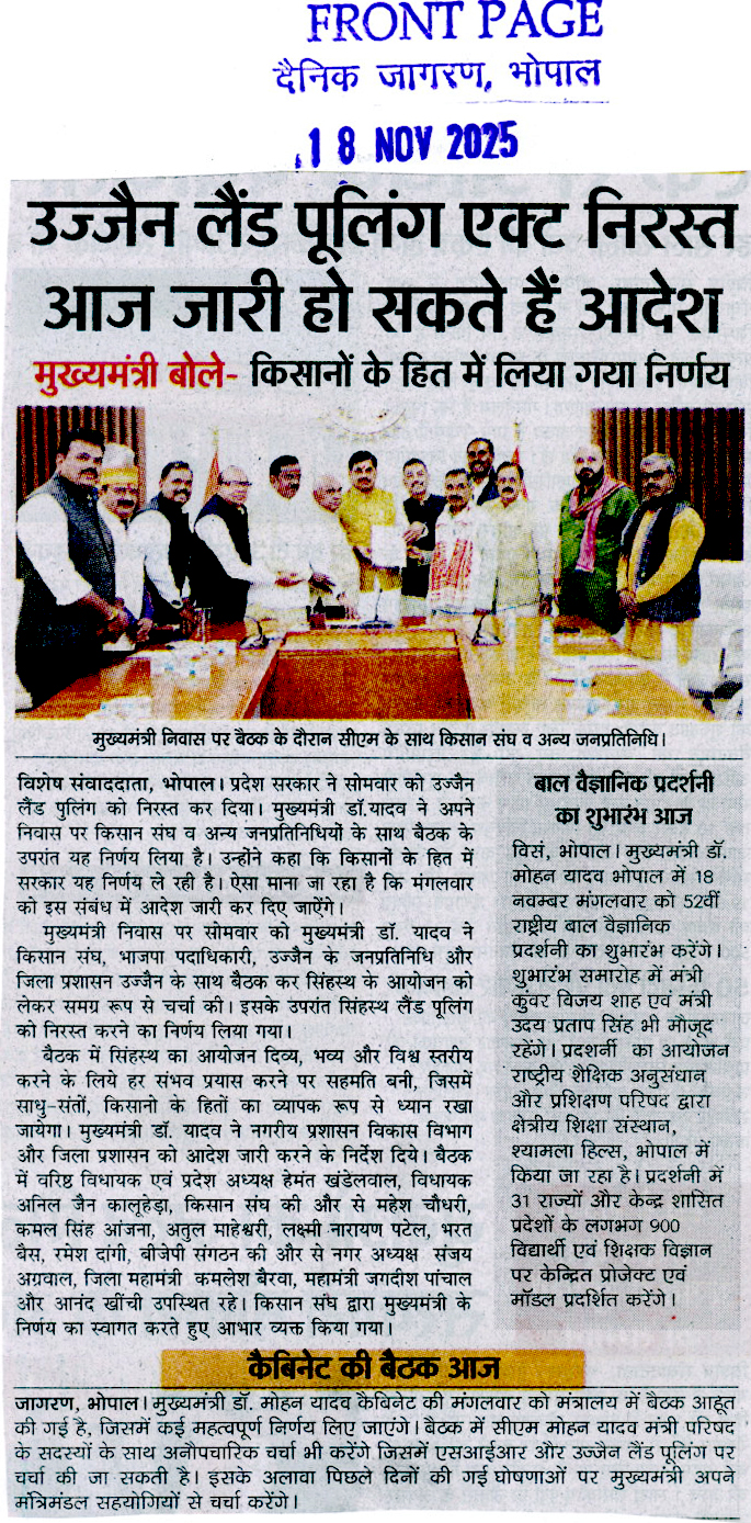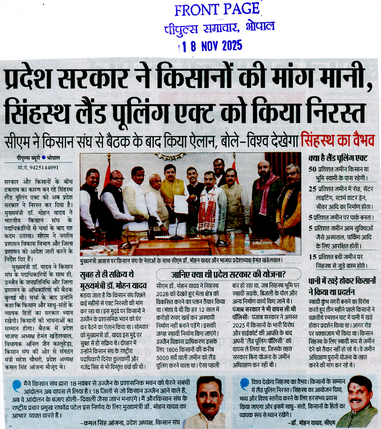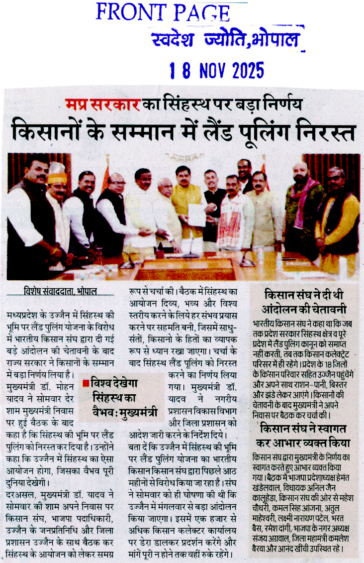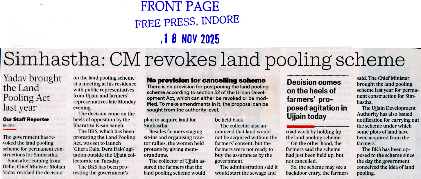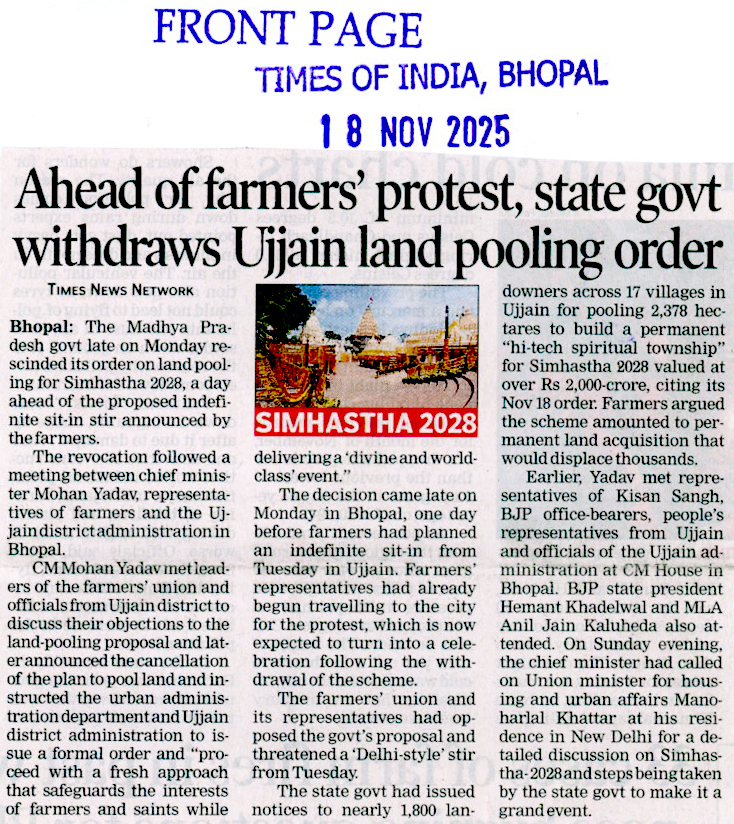 उज्जैन में लैंड पूलिंग निरस्त, मुख्यमंत्...