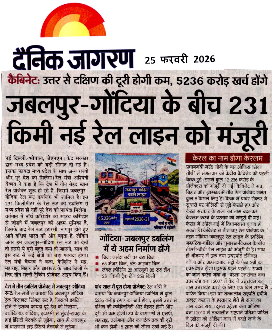 जबलपुर-गोंदिया के बीच 231 किमी नई रेल ला...