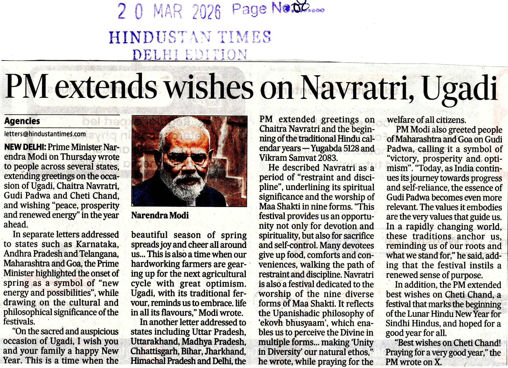 PM extends wishes on Navratri,...