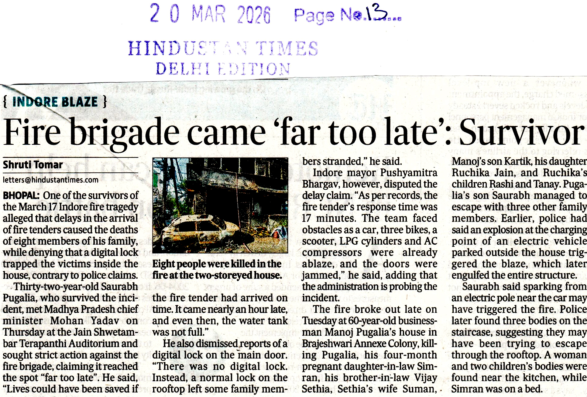 Indore house fire survivor ref...