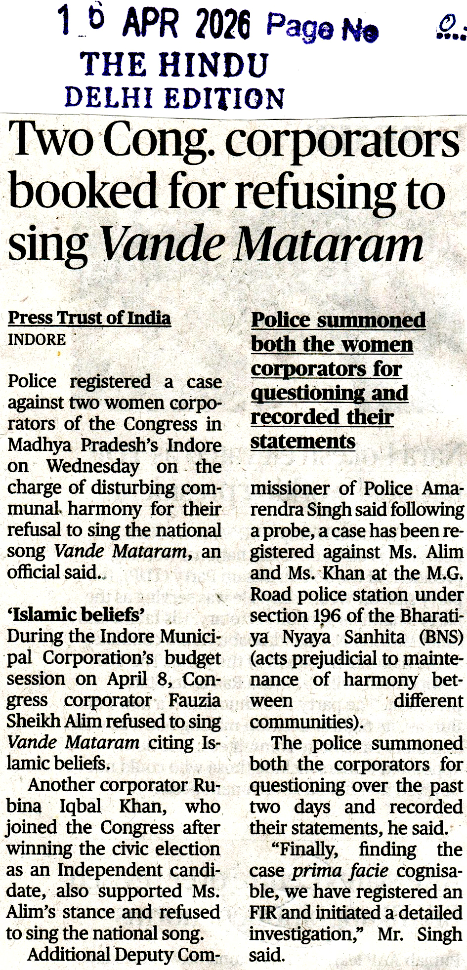 Two Cong. corprorators booked...