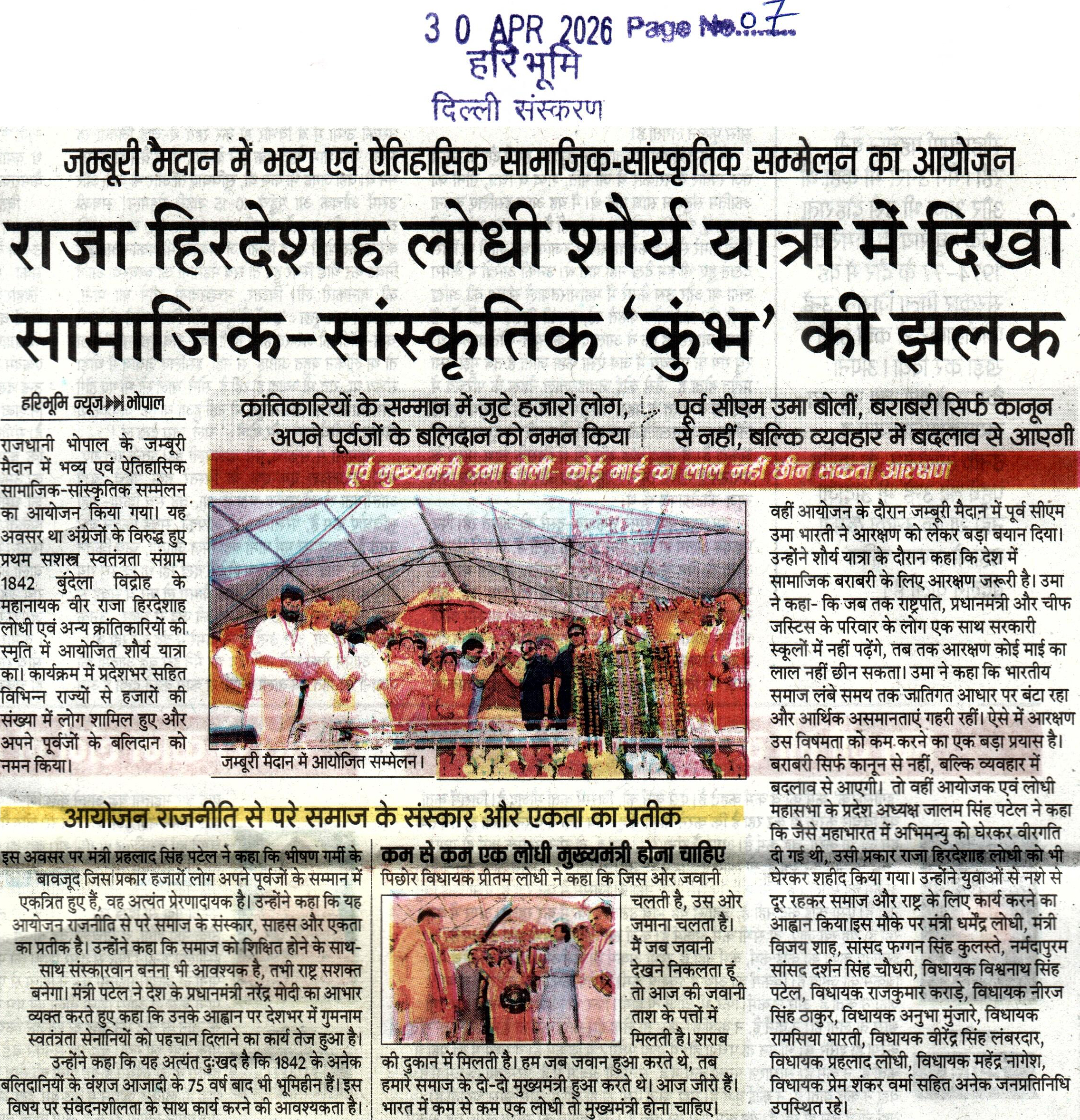 उमा भारती ने सामाजिक समानता के लिए तीसरे...