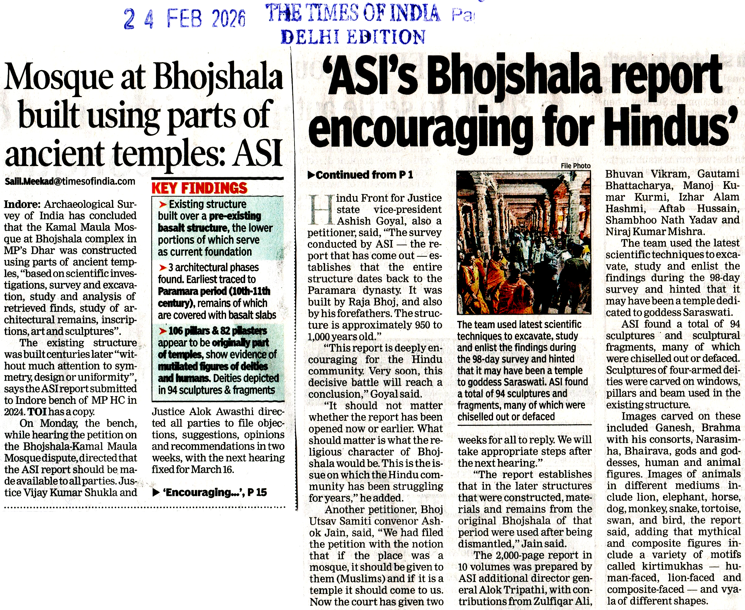 'ASI's Bhojshala report encour...