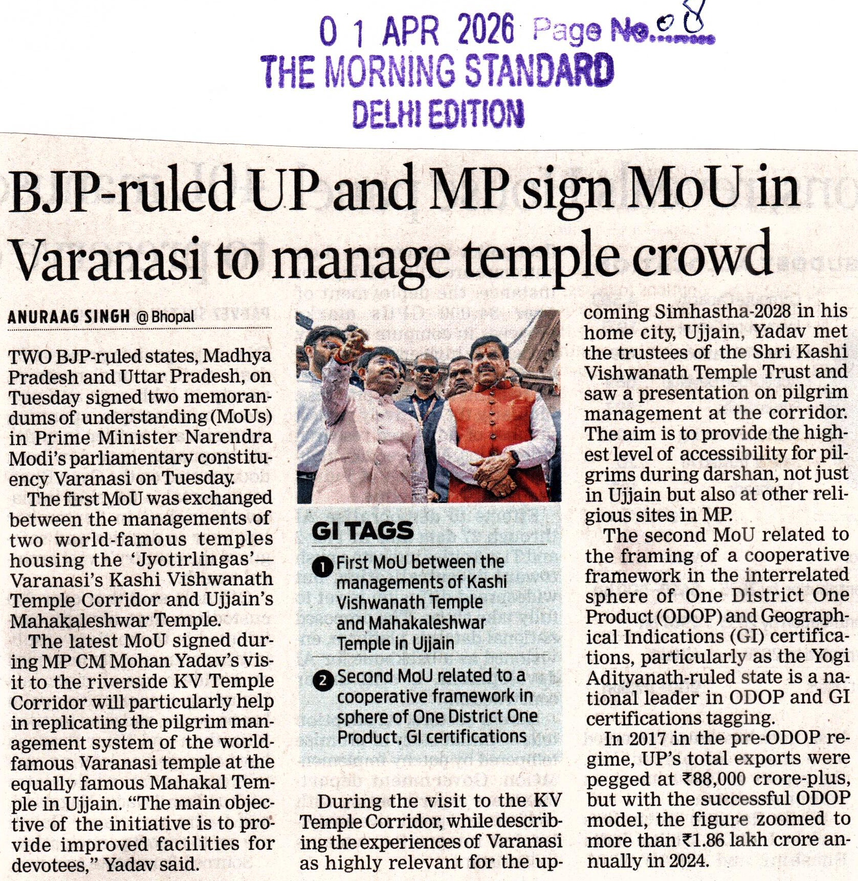 BJP-ruled UP and MP sign MoU i...