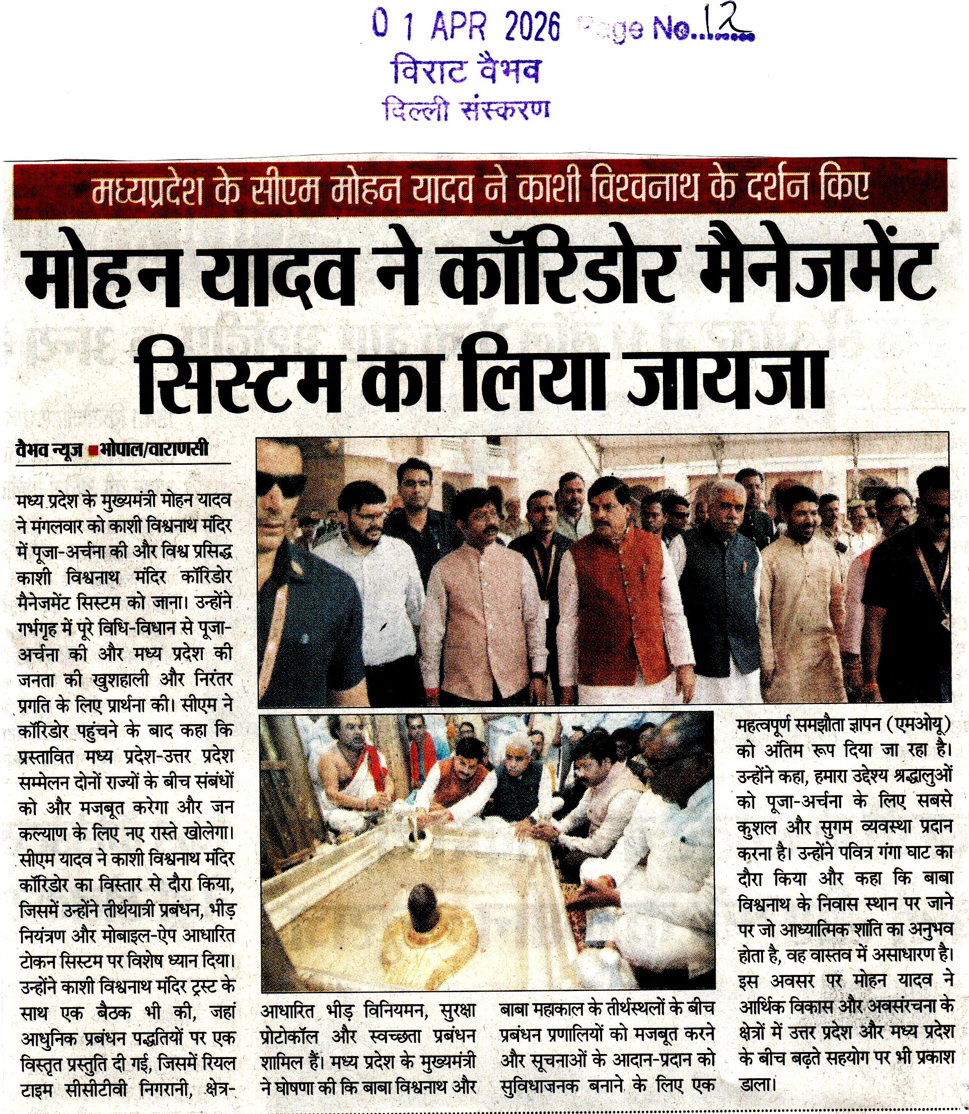 मोहन यादव ने कॉरिडोर मैनेजमेंट सिस्टम का...