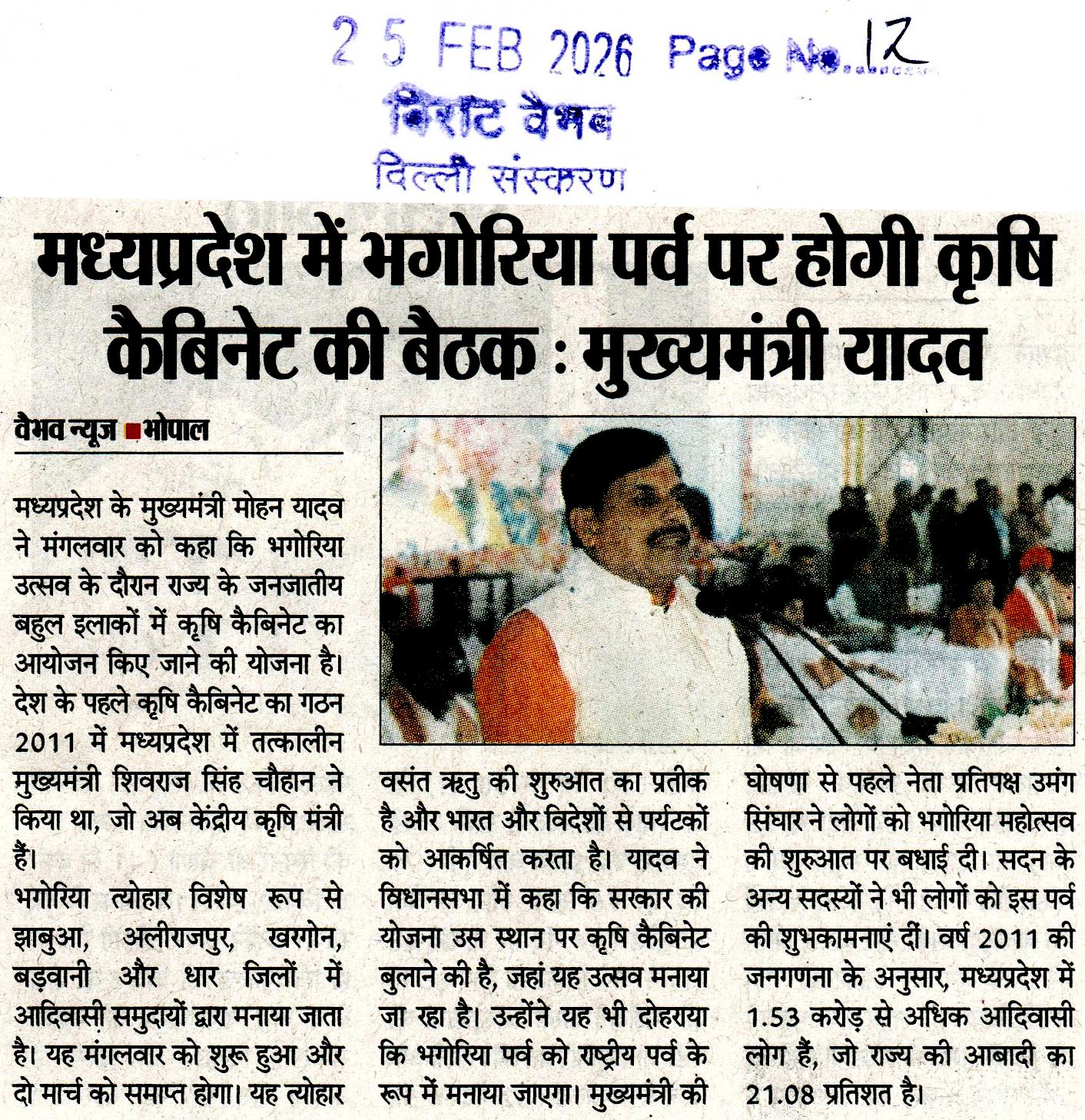 मध्यप्रदेश में भगोरिया पर्व पर होगी कृषि...