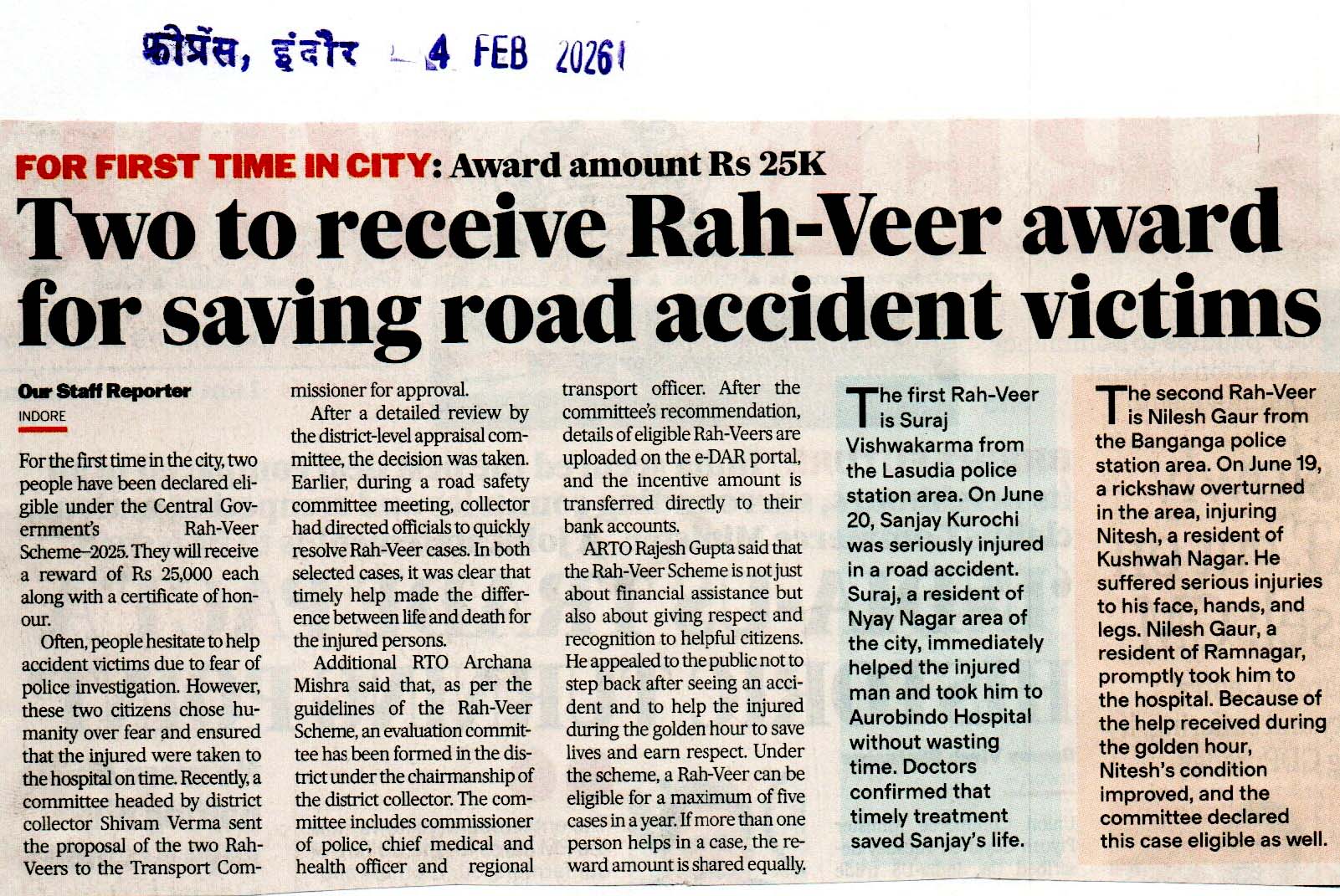 Two to receive Rah-Veer award ...