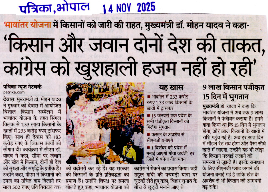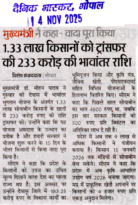 भावांतर : सीएम ने 1.33 लाख किसानों के खा...
