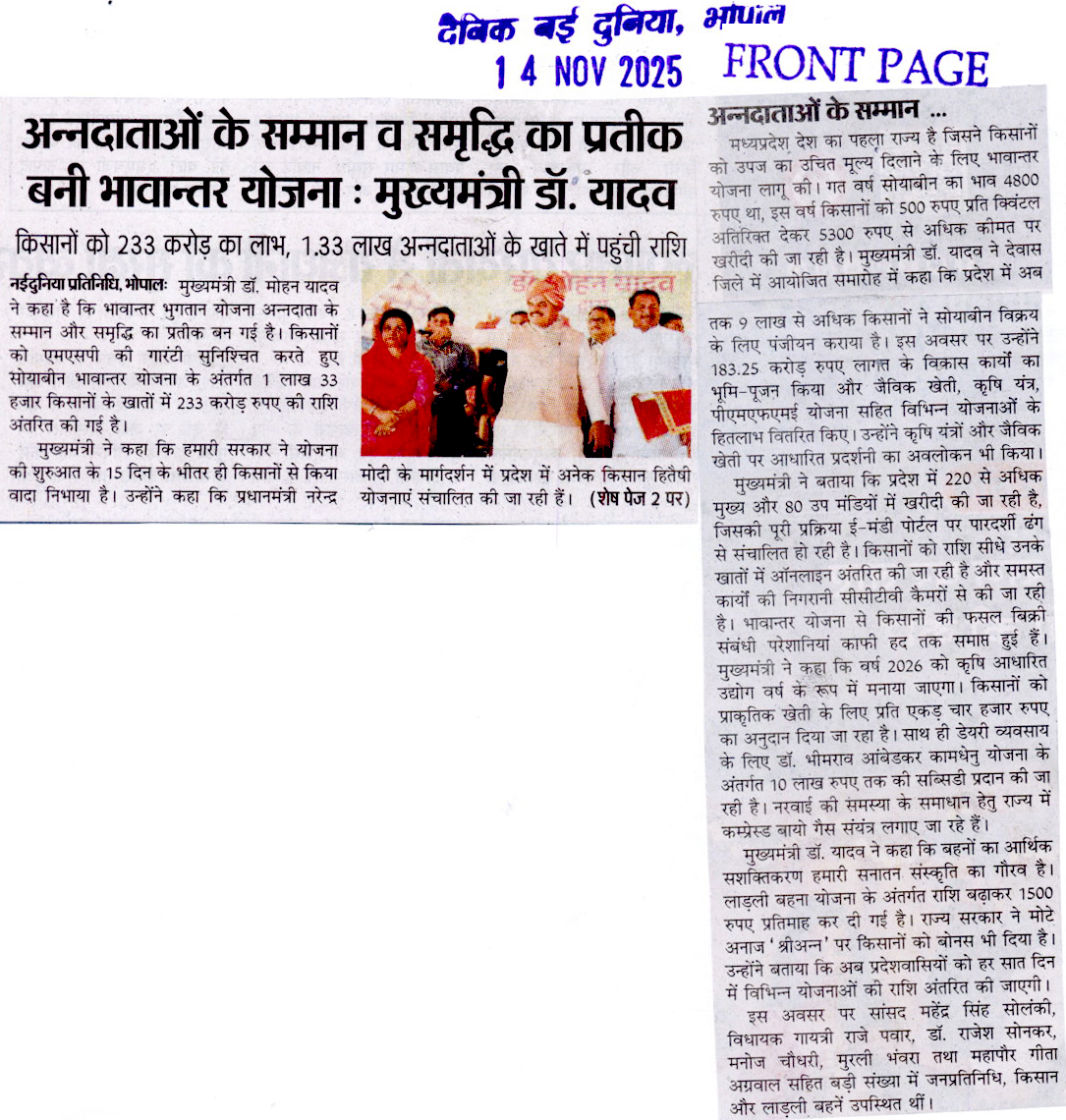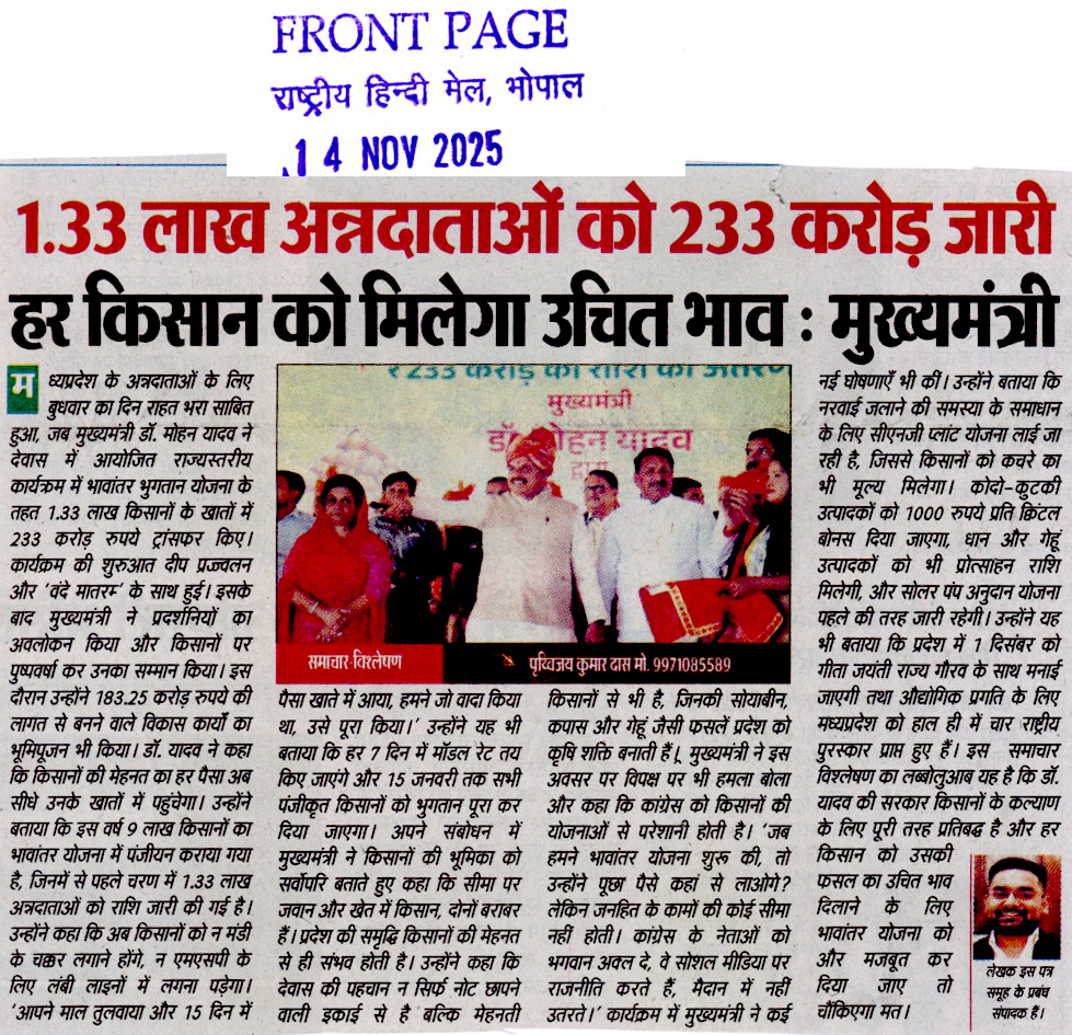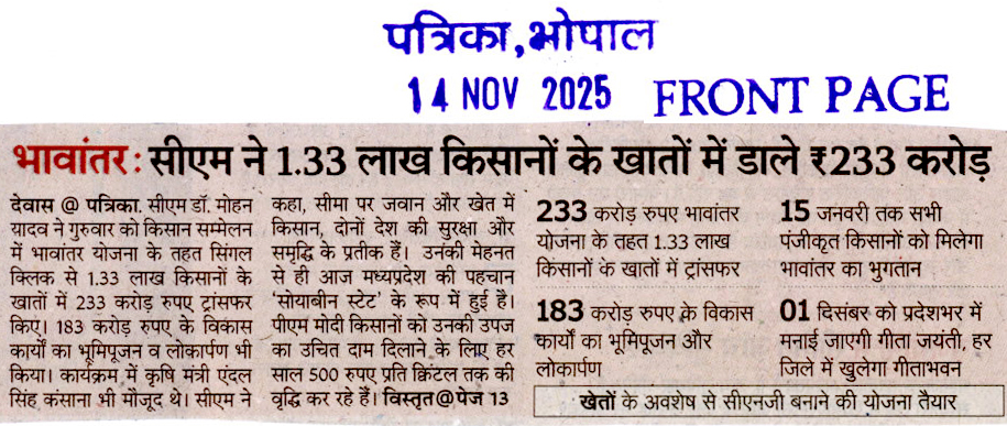 किसानों के खातों में भावांतर के 233 करोड...