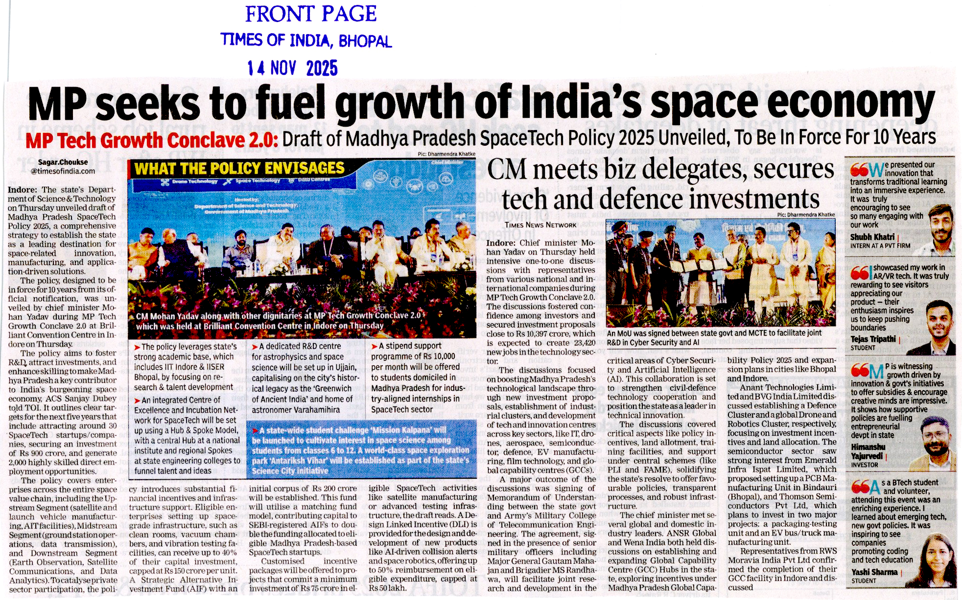 CM announces launch of MP Spac...
