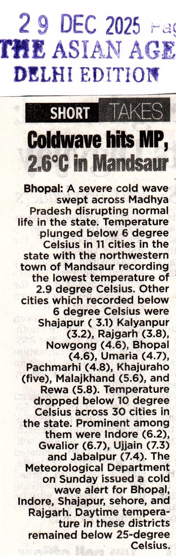 Coldwave hits MP, 2.6°C in Man...
