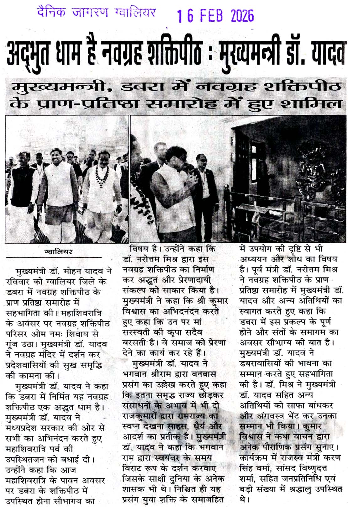 सीएम डॉ. यादव डबरा में नव