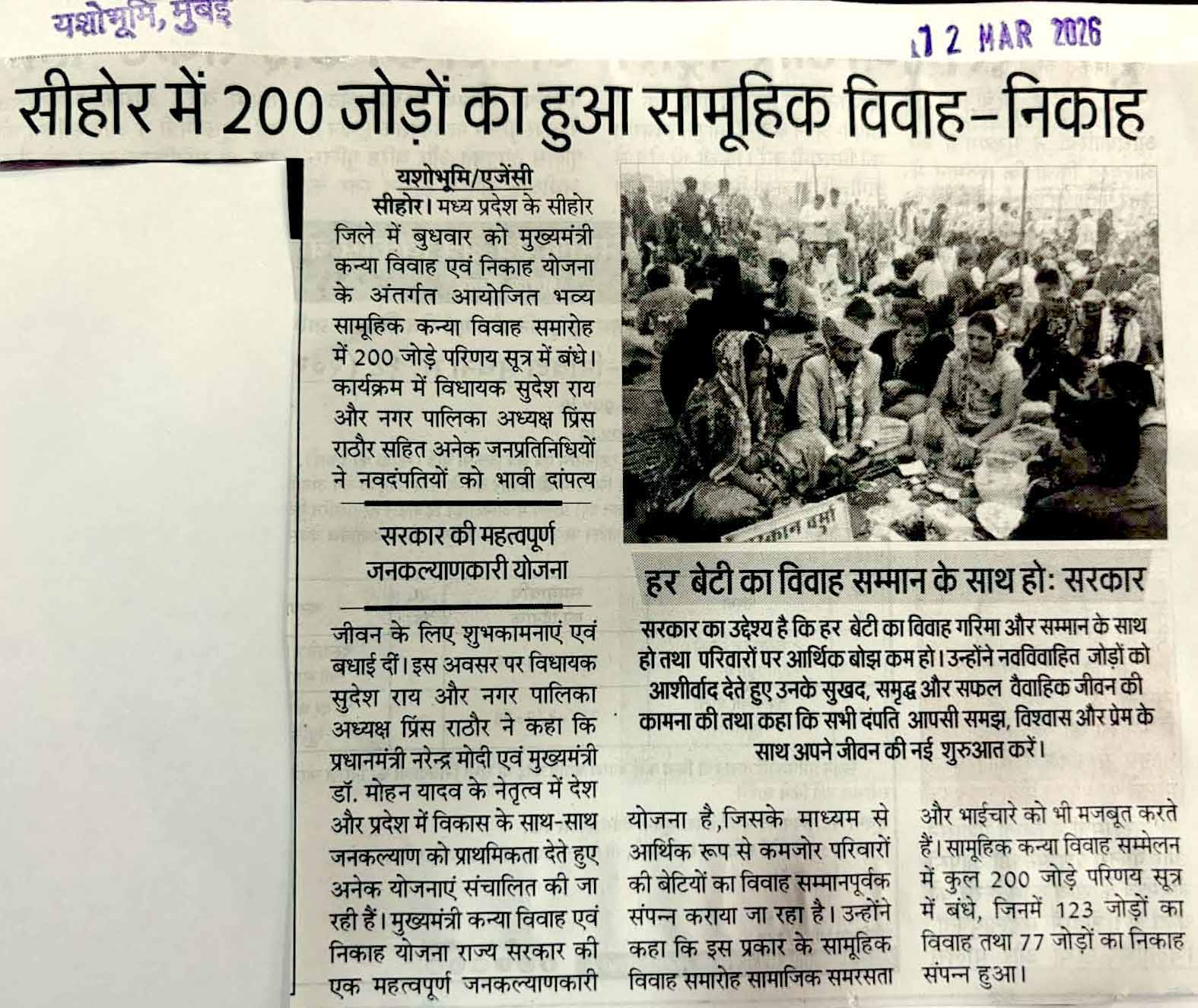 सीहोर में 200 जोड़ों का ह