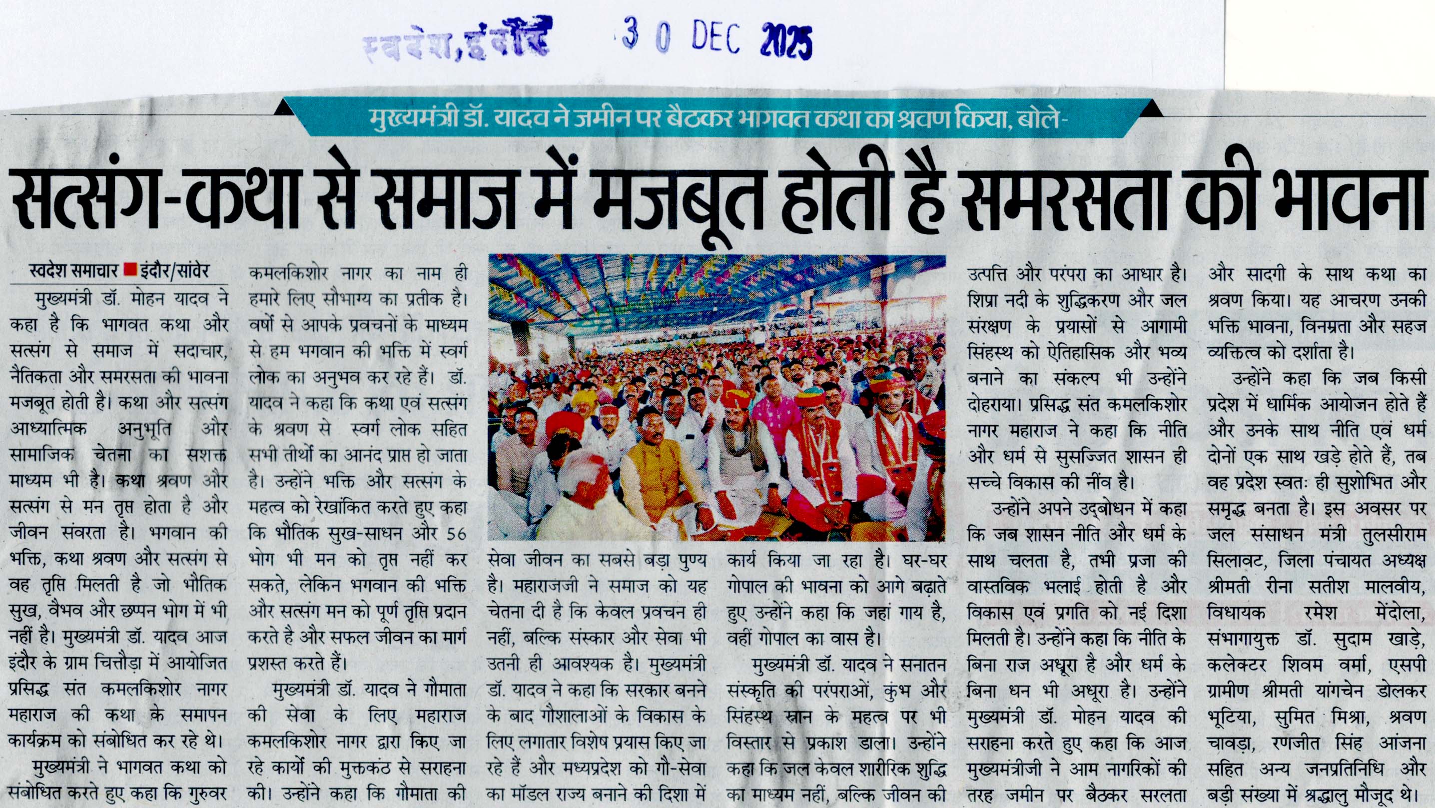 सत्संग-कथा से समाज में मज